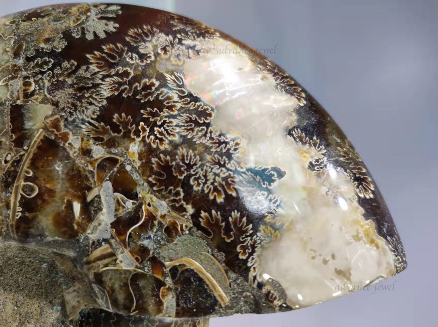 斑彩螺其形狀有如一個旋渦,是象徵和諧及平安,吉祥的標誌,其形態在於生生不息,無窮無盡。在風水上稱發財螺,有海螺席捲之意,有進無出,具招財吸財之功效。具招愛情、事業、財富、健康的多功能寶石,是很好的護身符和吉祥物。