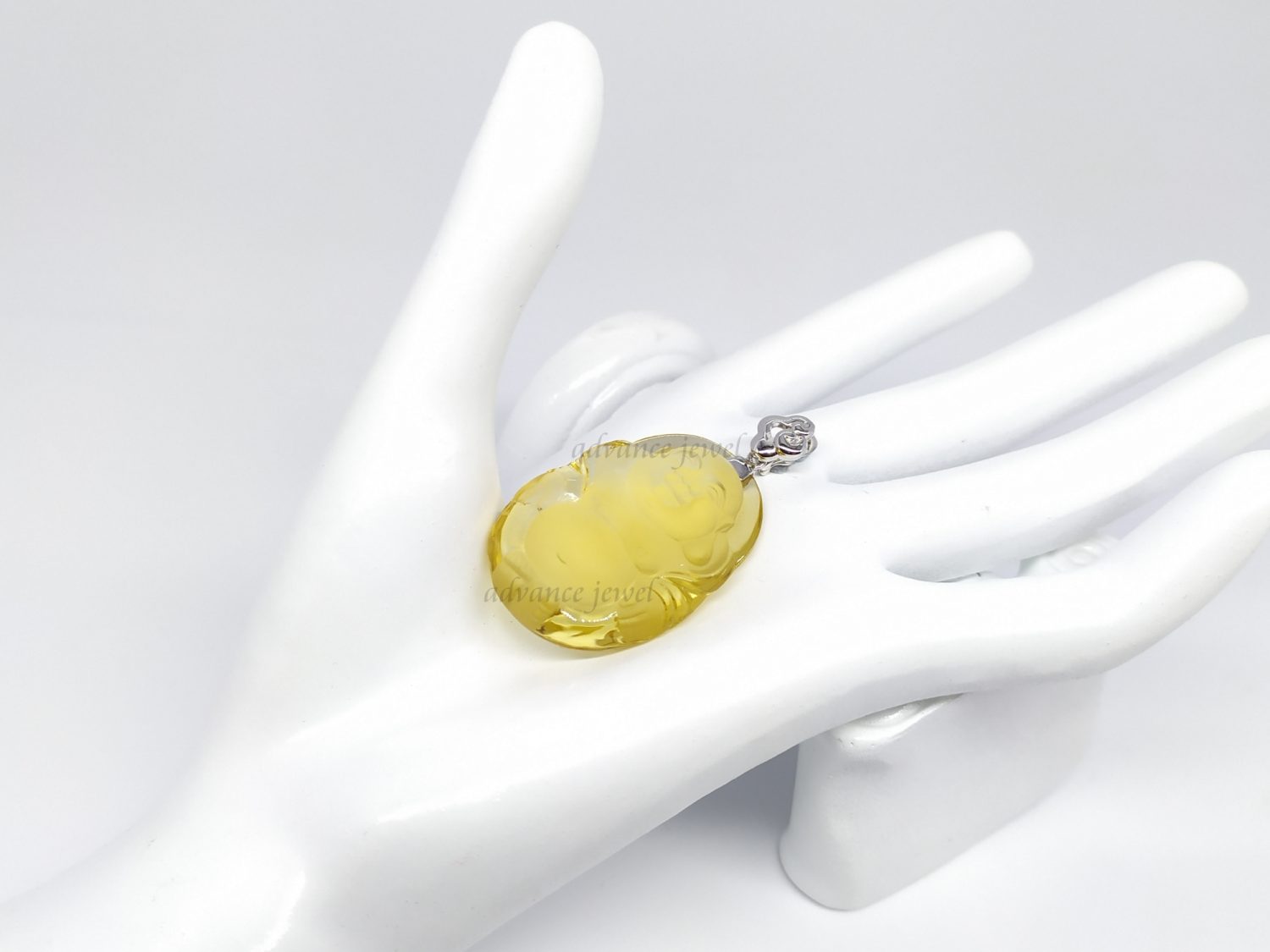 黃晶佛公雕刻吊墜 925