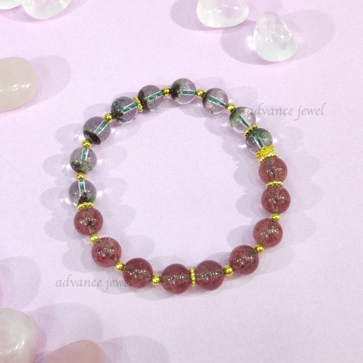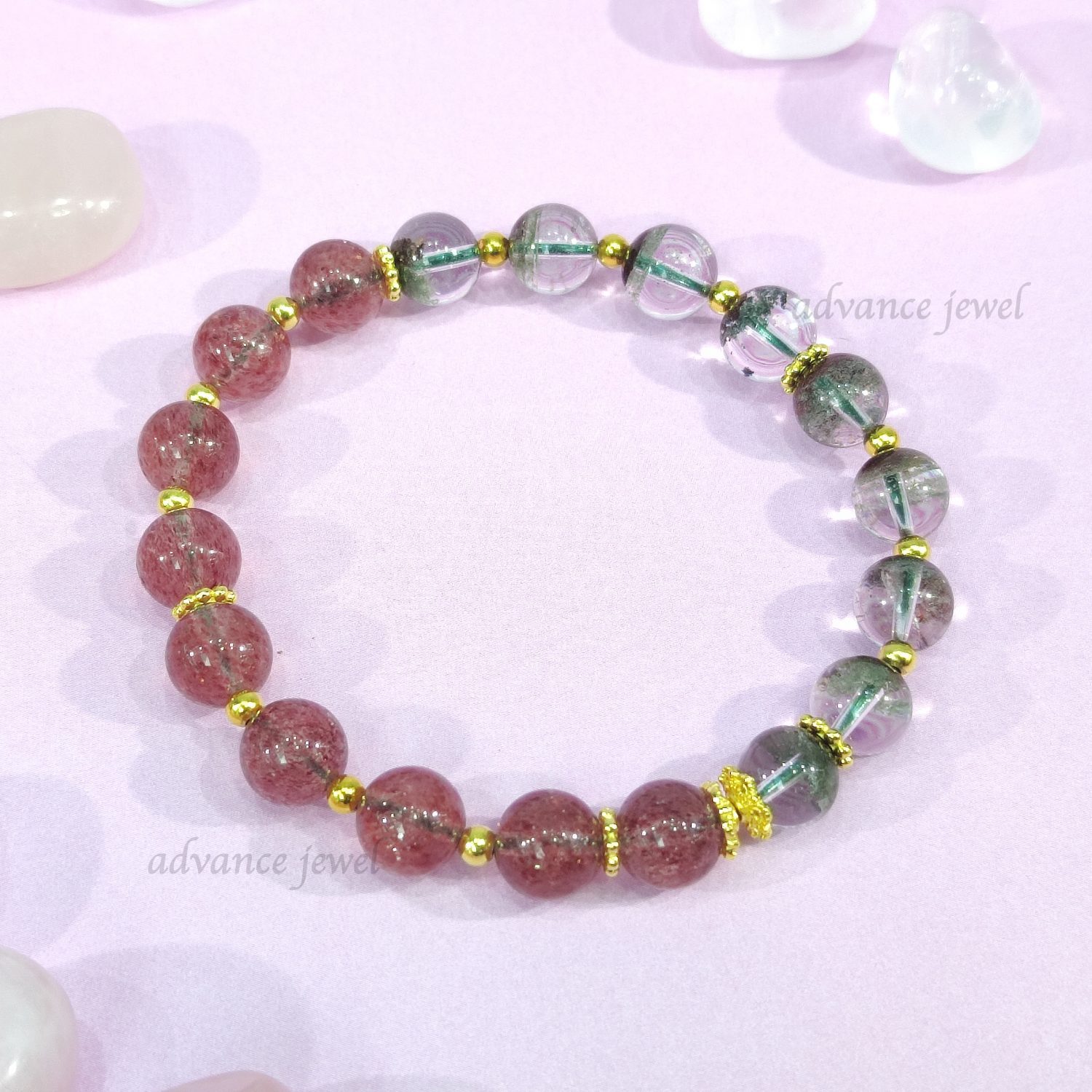 草莓晶增強愛情運勢,有助於吸引美好的姻緣,佩帶草莓水晶還能增加個人魅力、增進人際關係的美好圓融、和諧友善。