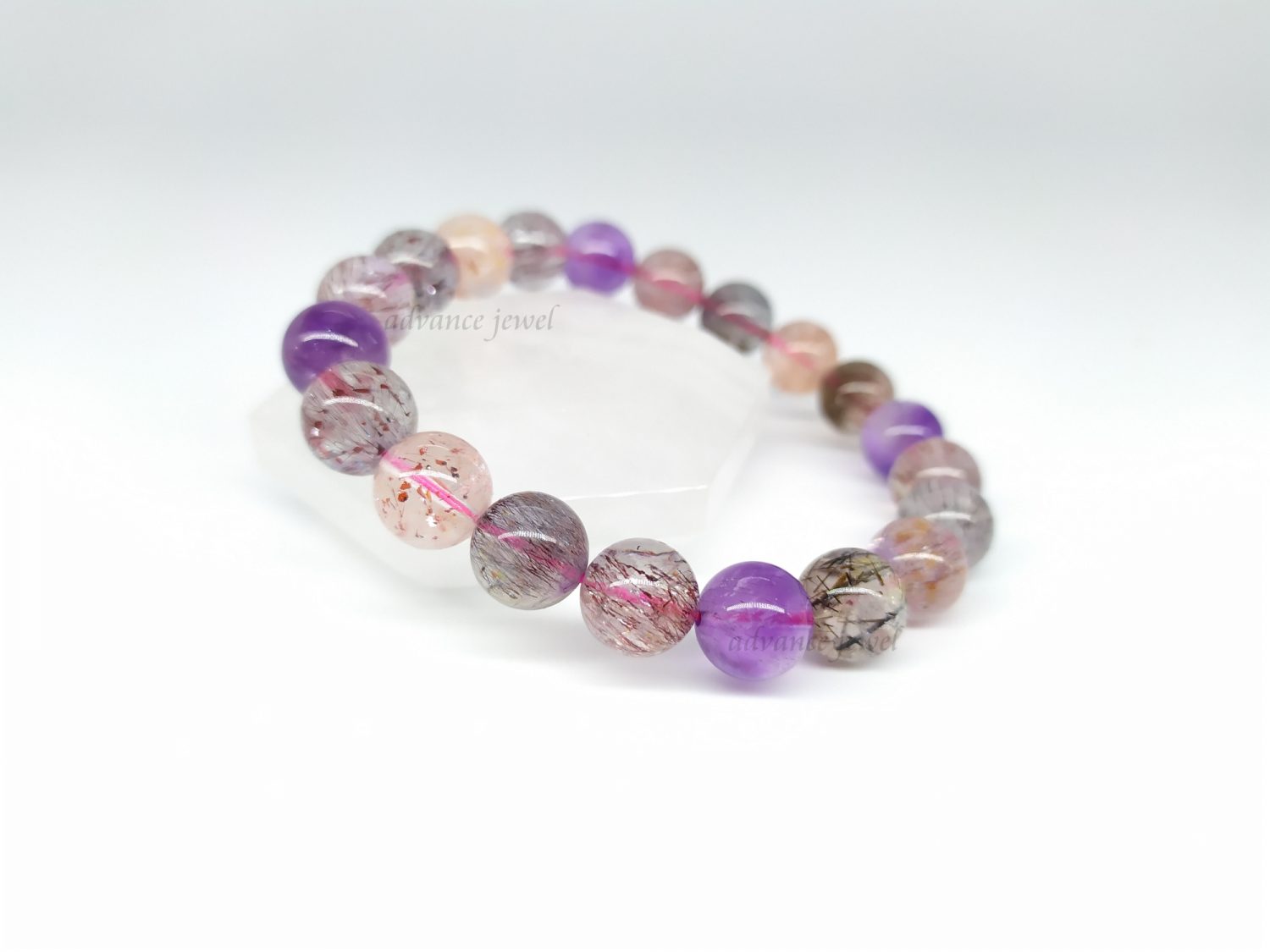 Super Seven 是一種擁有七種不用礦物的水晶,集合不同功能如一身,財富、愛情、人緣、貴人、思考、溝通、靈性等等,所以獲得大眾喜愛。其獨特不同的礦物紋、顏色和功效,吸引了不少人佩戴。